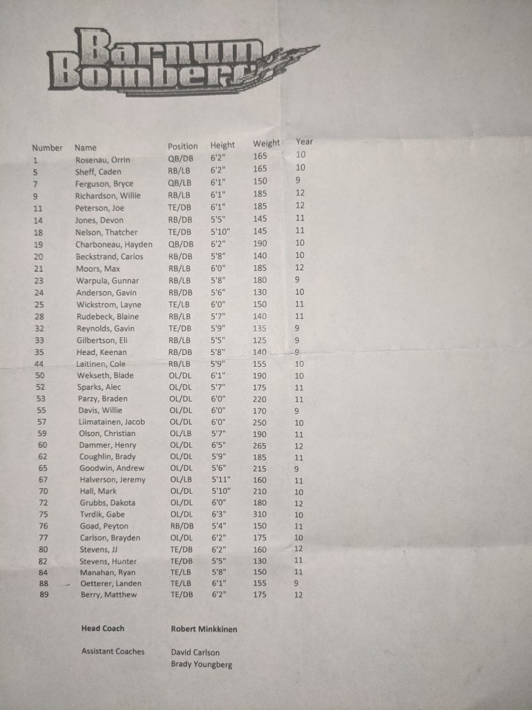 Final Score: Barnum 8 – Deer River 32
