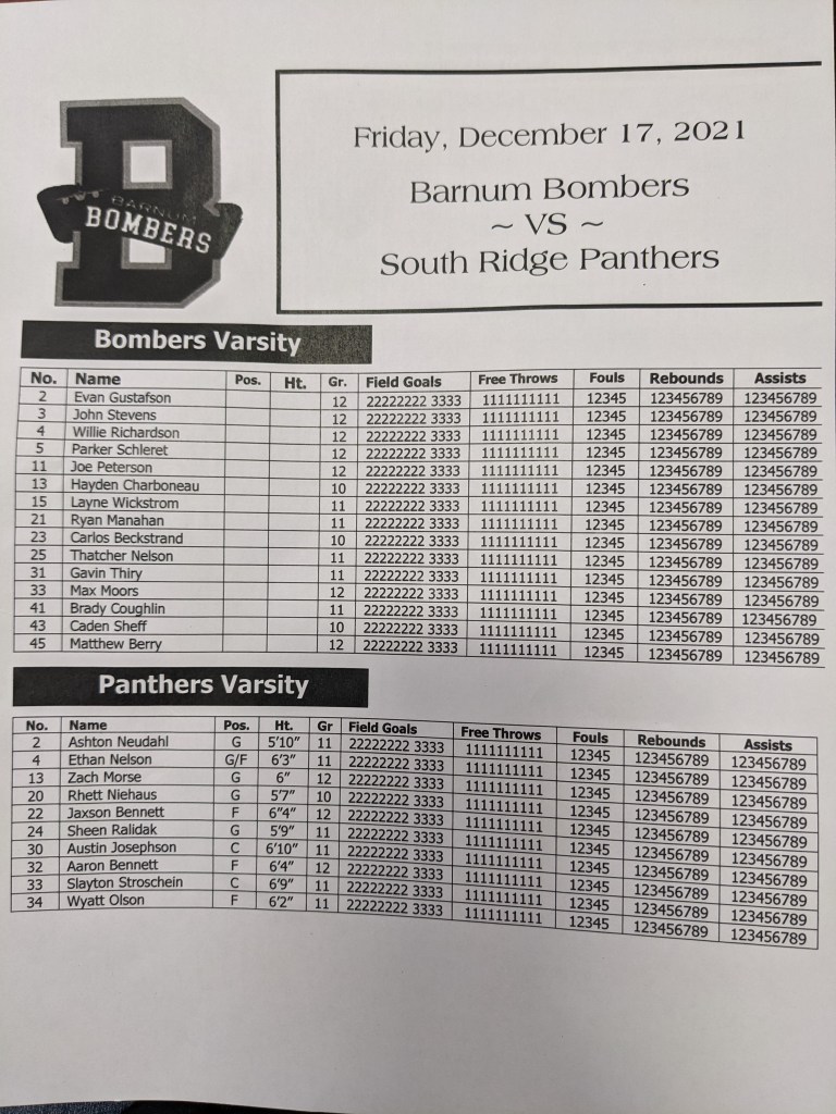 Final Score: Barnum 47 – South Ridge 41