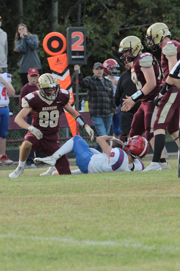 The Barnum Bombers defeat the Chisholm Bluestreaks 50-6 and move to 2-0 for the season.