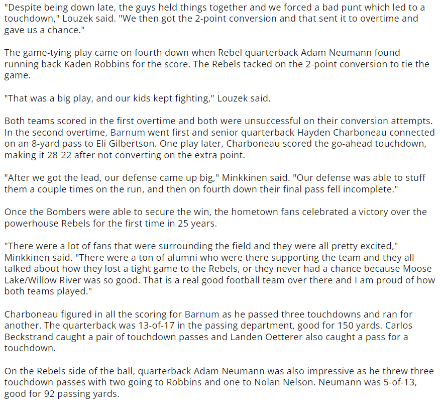 A chronicle of my Barnum High School and University of Minnesota – Morris college football career.