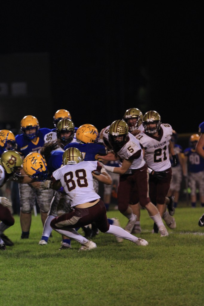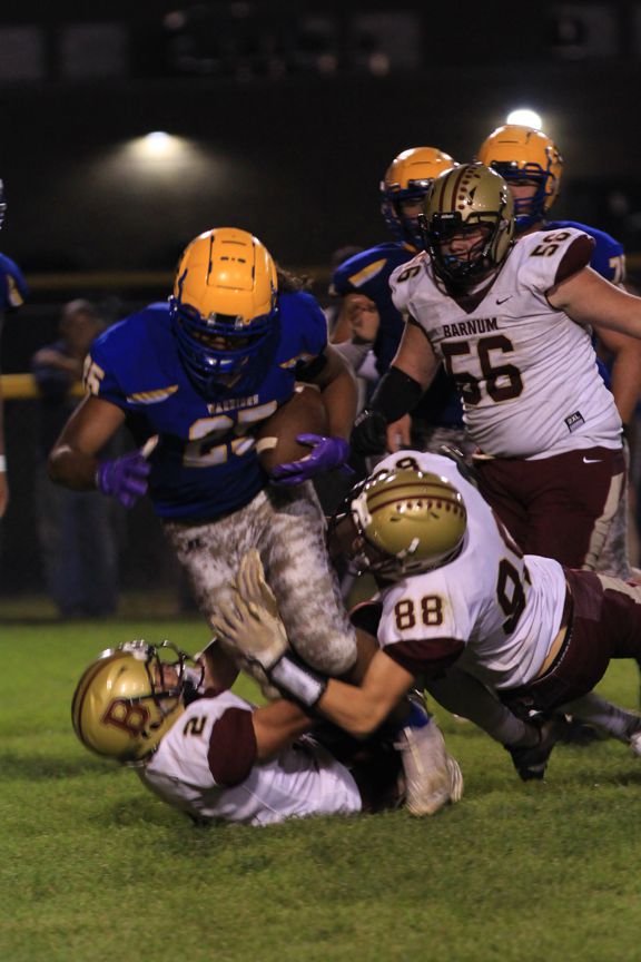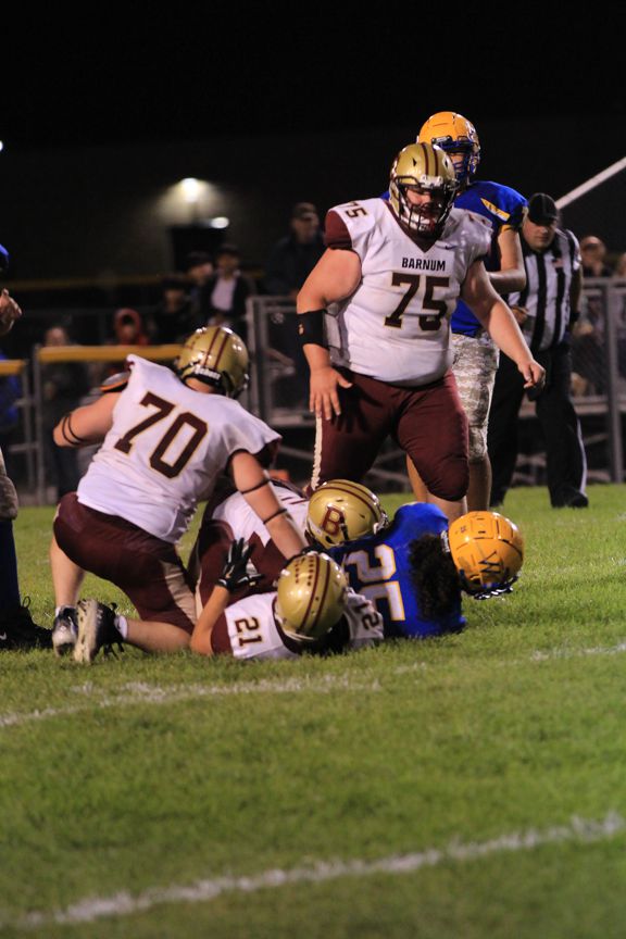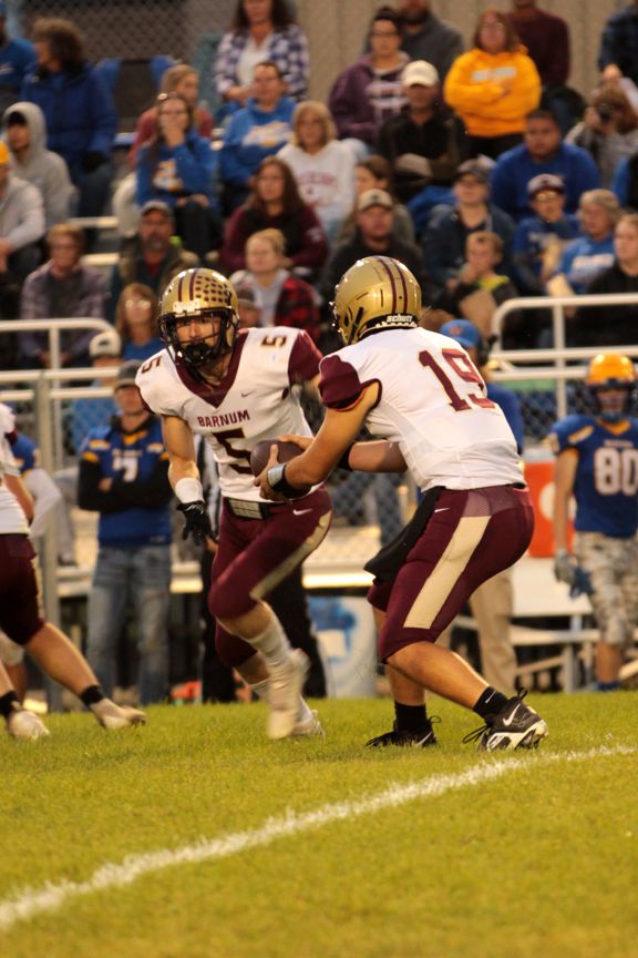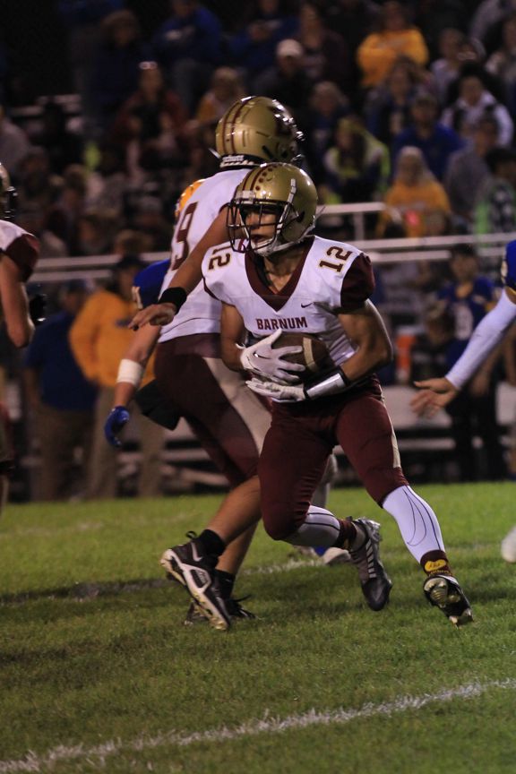 Barnum Bombers win 32-18 against the Deer River Warriors.
