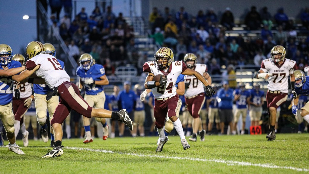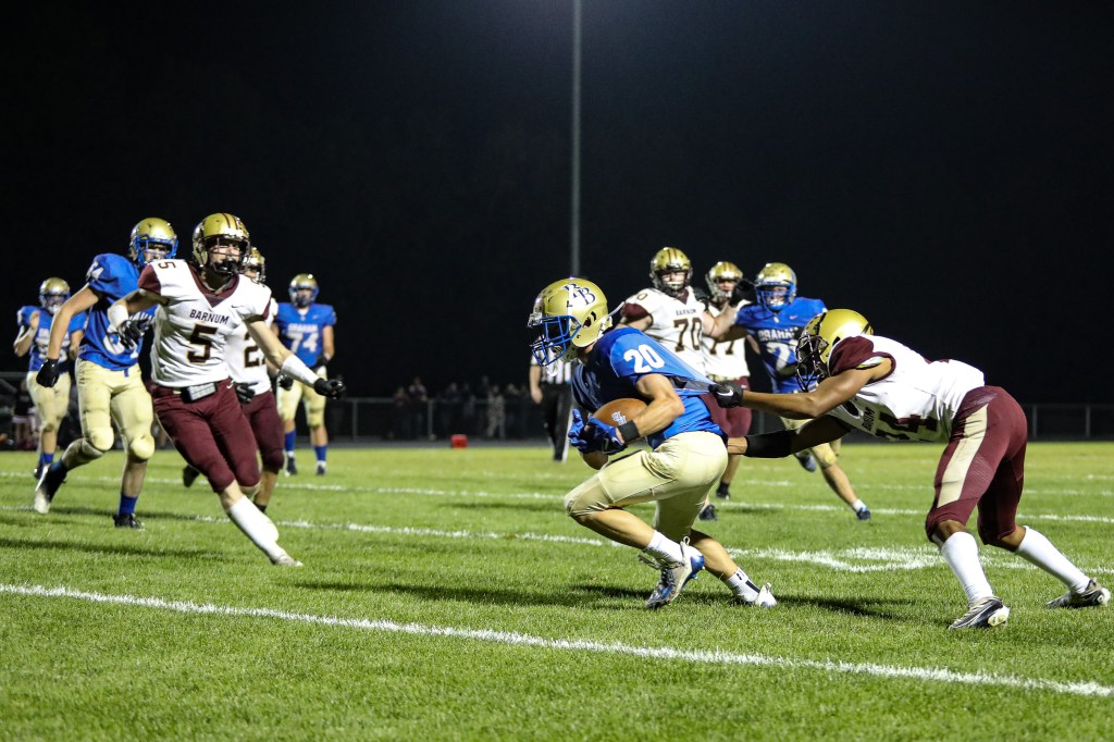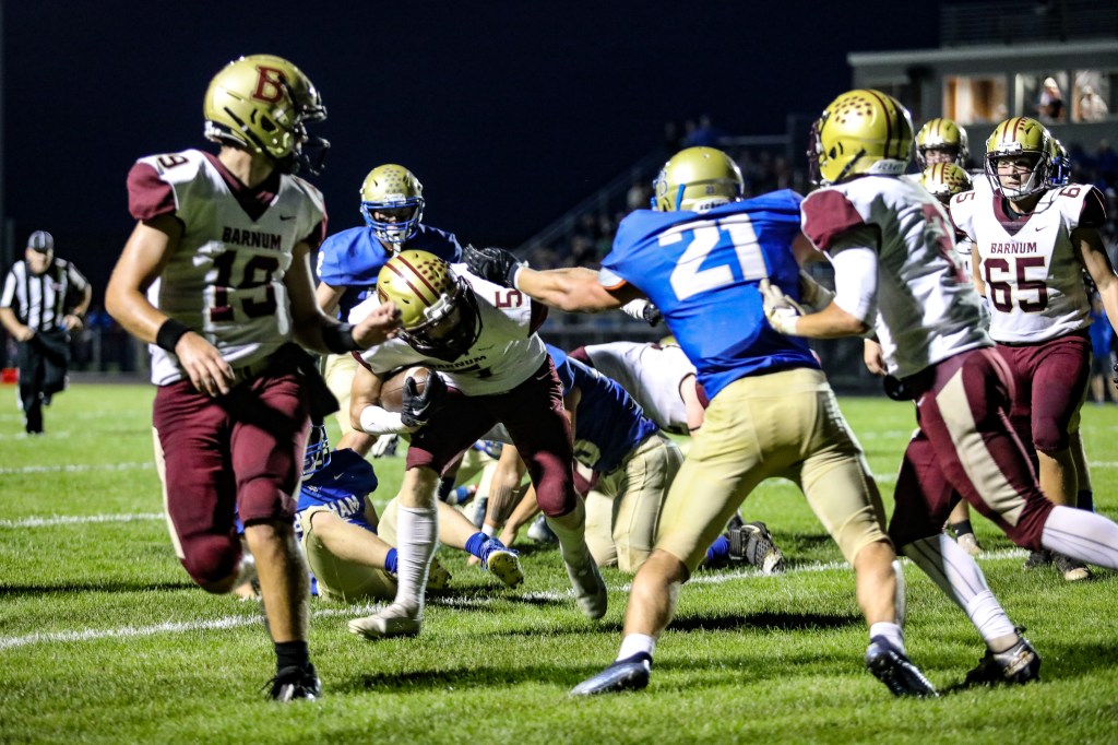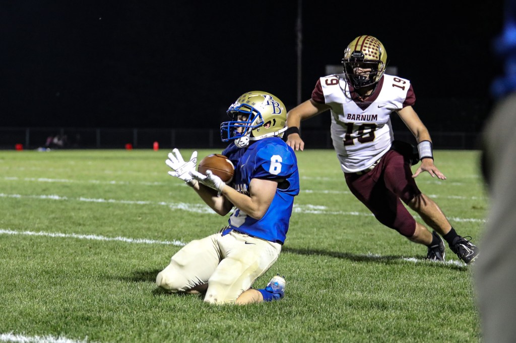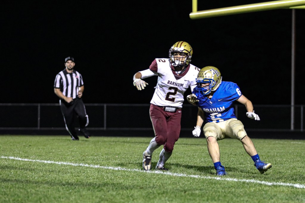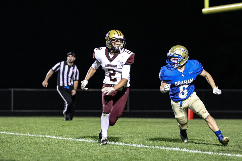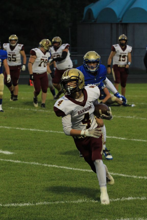 Barnum Bombers beat out the Braham Bombers 27-26 bringing their season record to 4-0!