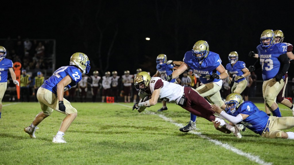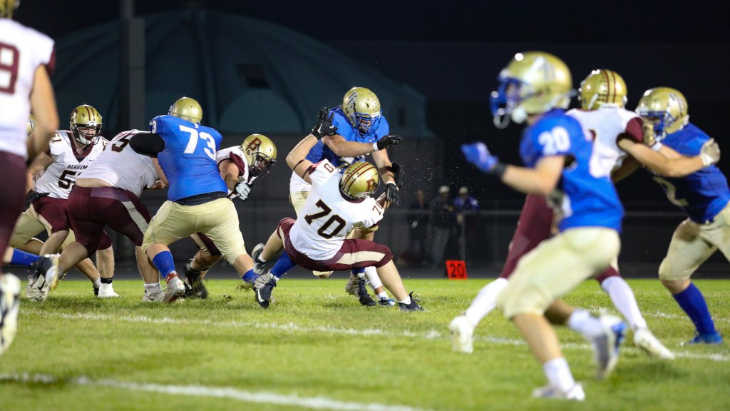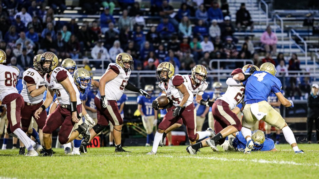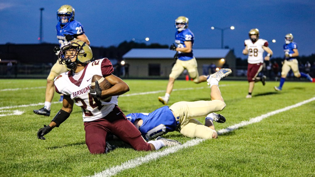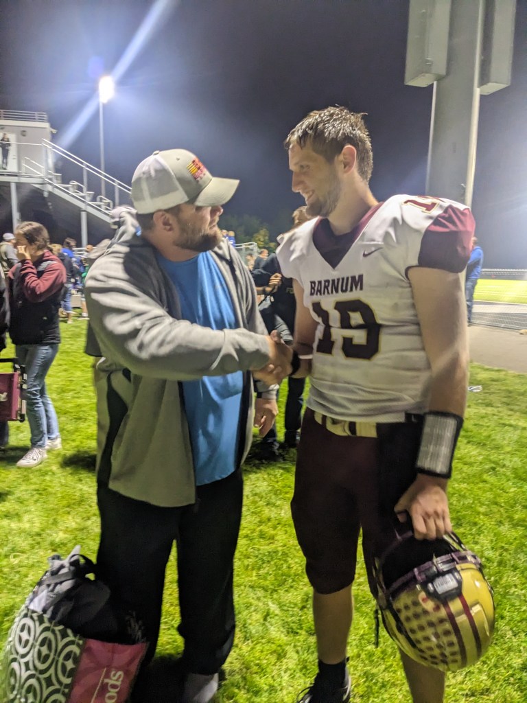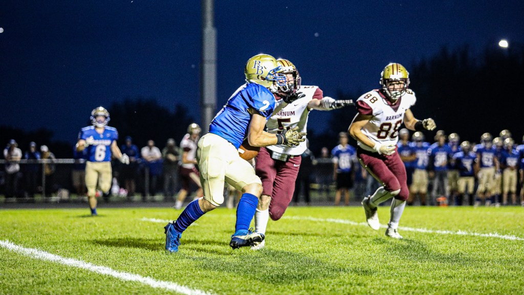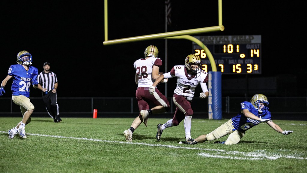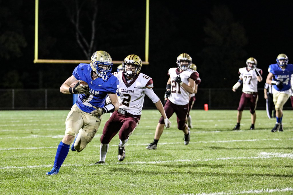 Barnum Bombers beat out the Braham Bombers 27-26 bringing their season record to 4-0!